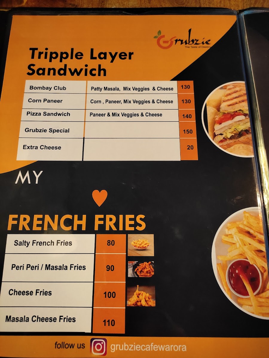 The menu at Grubzie Cafe truly shines with its rich variety, catering to diverse taste buds. Indulge in one of their exceptional hot beverages, such as the Indian Hot Coffee or the delectable Hot Chocolate, which are sure to warm you from the inside out. If you're in the mood for something refreshing, their Mojitos, especially the Virgin Mojito and Strawberry Mojito, are irresistibly refreshing.